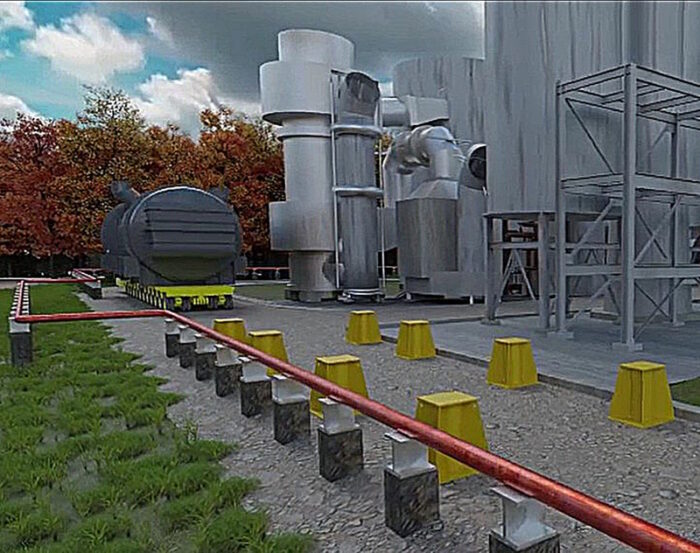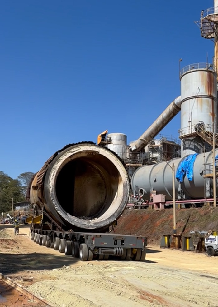 Inicialmente, a solução proposta foi a de instalar o novo queimador já com o revestimento refratário previamente realizado. Essa alternativa foi descartada pelo risco de trincas ou descolamento de parte dos tijolos, cuja correção não garantiria o funcionamento pleno do queimador, inclusive no curto prazo. Uma nova solução – transportar os dois equipamentos (antigo e novo) em um conjunto transportador autopropelido eletrônico (SPMT) de 12 eixos e realizar sua movimentação vertical com o uso de sistema de levantamento sincronizado. Para a remoção, o queimador antigo foi dividido em dois módulos.